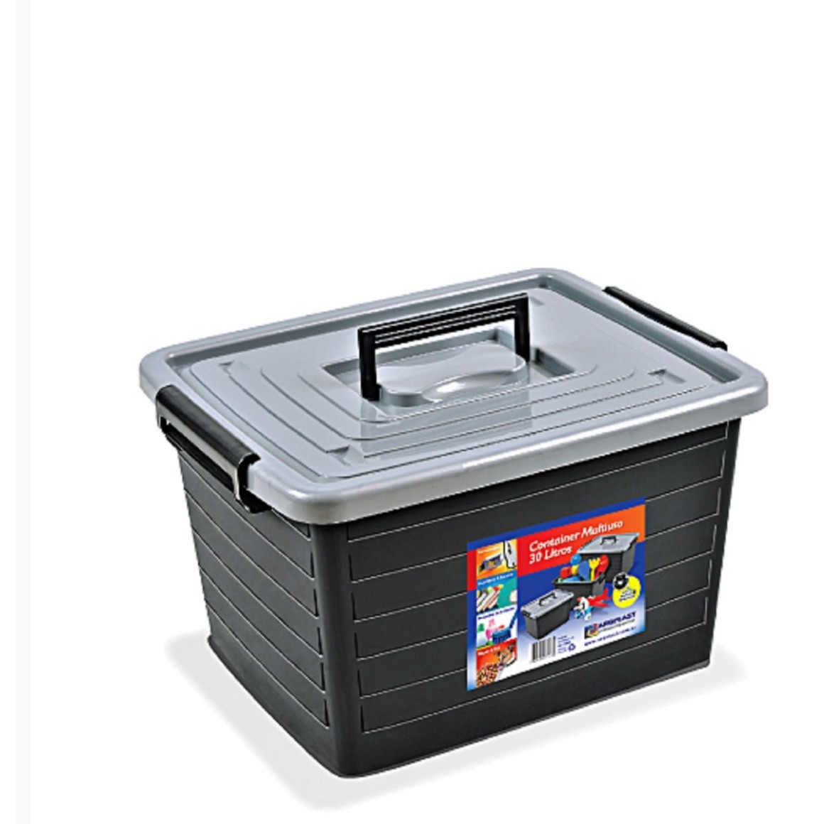 -A tampa é feita com encaixe para empilhamento de caixa com 30 litros vem com trava na tampa e alça.