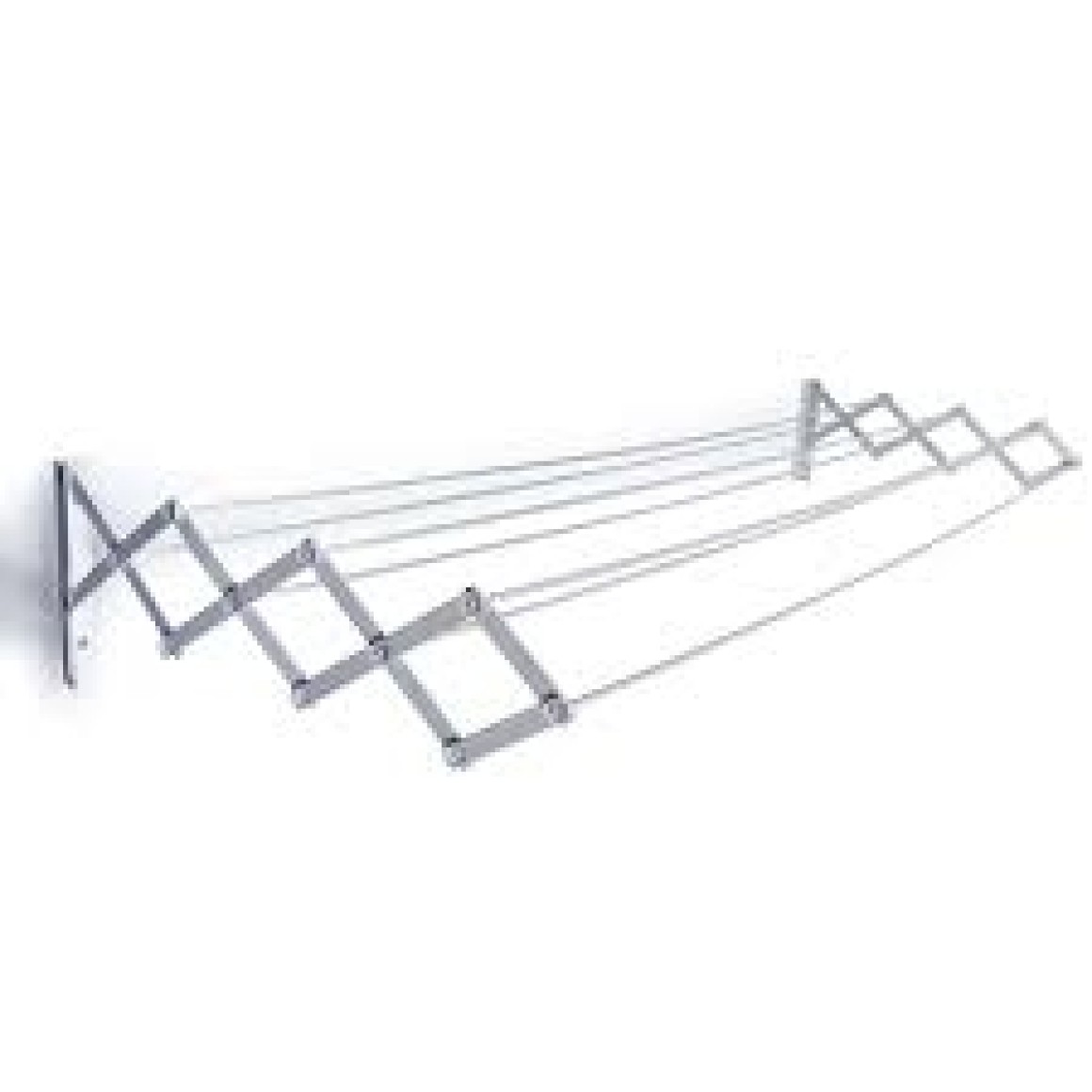 Varal sanfonado com varetas em aço carbono rebitadas oferecem maior resistência.